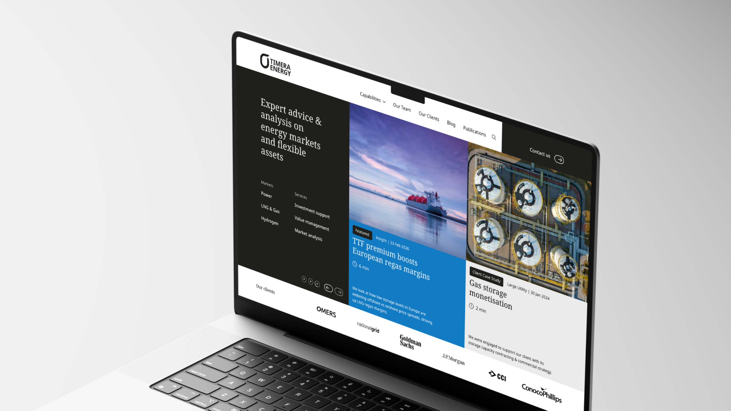 With a growing team and expanding focus across power, LNG, gas, and hydrogen, the site needed a complete refresh that communicated the depth of the firm’s consulting expertise and market analysis capabilities.