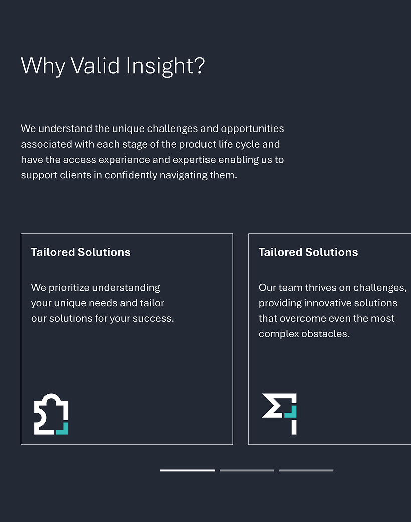 SoBold worked with Valid Insight, a market access consulting firm operating under the Bioscript Group, to develop a new website. The project was delivered in two phases: an MVP launch, followed by a detailed round of refinements based on structured UAT feedback from the Valid Insight team.